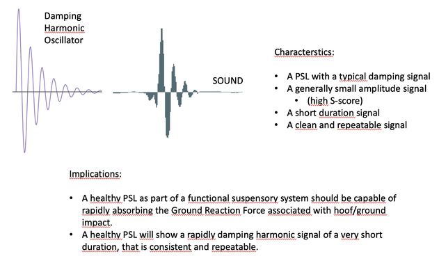 Placement of a small sensor on the suspensory ligaments can be used to record the GRF signal of hoof impact with the ground as it travels up the limb. The S-score of this signal can then be used to assess the functional health of the suspensory ligaments.